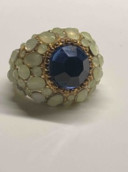 Vintage Gold-Tone Domed Cocktail Ring with Blue Faceted Center Stone