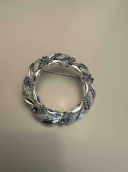 Vintage Silver-Tone Wreath Brooch with Aquamarine Rhinestones