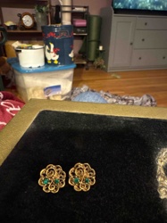 Vintage Gold-Tone Filigree Clip-On Earrings with Green Accents