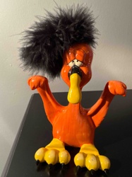 Vintage Novelty Anthropomorphic Bird Figurine with Feather Plumage