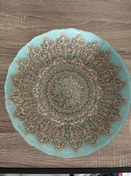 Turquoise Art Glass Decorative Plate with Metallic Overlay