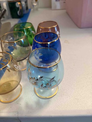 Mid-Century Gilded Multi-Colored Footed Snifters Set