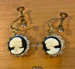Vintage Cameo Rhinestone Screw-Back Drop Earrings