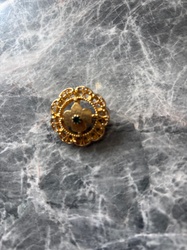 Take a clear photo of your Vintage Gold Tone Filigree Enamel And Rhinestone Costume Brooch and upload it to our platform. One photo is all you need.