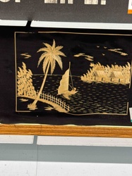 Vintage Tropical Wheat Straw or Bamboo Husk Collage Art