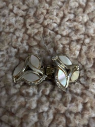 Vintage Trifari-style Mother of Pearl Leaf Clip-On Earrings