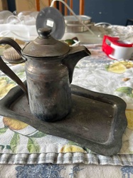 Vintage Silver-Plated Mini Coffee Pot and Engraved Serving Tray