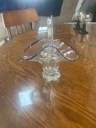 Vintage Art Glass Basket with Cobalt Blue Rim and Applied Handle