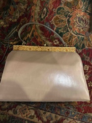 Mid-Century Vintage Beige Leather Frame Handbag