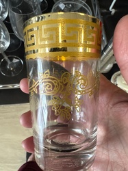 Vintage Gold Rimmed Tumbler with Greek Key and Floral Filigree