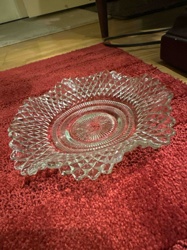Vintage Clear Glass Diamond Cut Ruffled Candy Dish
