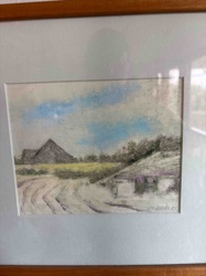 Original Landscape Drawing of Farm Buildings