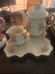 Porcelain Teapot and Tray Set with Applied Roses