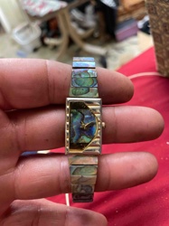 Vintage Ladies' Silver-Tone Abalone Inlay Tank Watch