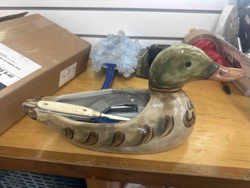 Vintage Hand-Painted Glazed Ceramic Mallard Duck Planter/Trinket Dish