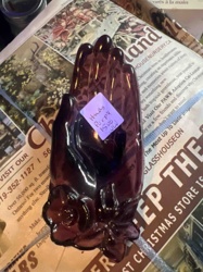 Amethyst Pressed Glass Hand-and-Rose Trinket Dish