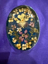Vintage Sterling Silver Floral Botanical Resin Brooch