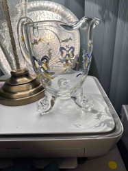 Pressed Glass Creamer with Etched Floral Design