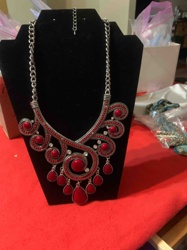Silver-Tone Antiqued Red Bib Statement Necklace
