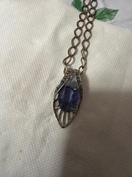 Vintage Purple Glass Navette Pendant Necklace