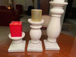 Set of Three Graduated Turn-Style Ceramic Pillar Candlesticks