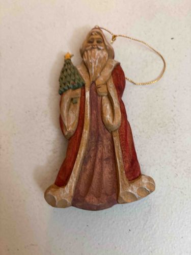 Vintage Carved Wood-Style Santa Claus Christmas Ornament