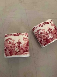 Red Transferware Ceramic Napkin Rings