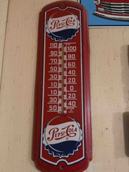 Vintage 1950s Pepsi-Cola Vertical Tin Thermometer