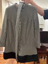 Vintage Houndstooth Print A-Line Coat with Faux Fur Trim
