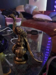 Vintage Brass Peacock Figurine on Pedestal