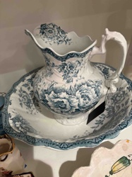 Victorian Style Blue and White Flow Blue Wash Basin and Pitcher Set