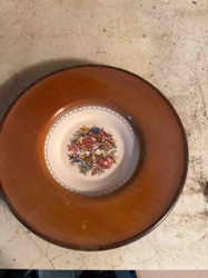 Mid-Century Wooden Nut Bowl with Ceramic Inset