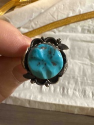 Zuni Sterling Silver and Natural Turquoise Squash Blossom Necklace and Ring Set