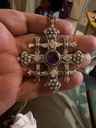 900 Silver Jerusalem Cross Pendant with Amethyst