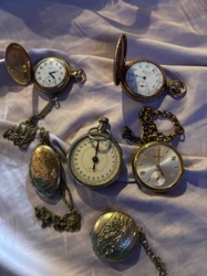 Assorted Collection of Pocket Watches, Pendants, and a Map Measurer