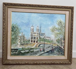 Notre Dame Cathedral Cityscape Oil Painting in Ornate Gilt Frame