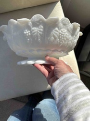 Vintage Milk Glass Harvest Grape Pattern Fruit Bowl