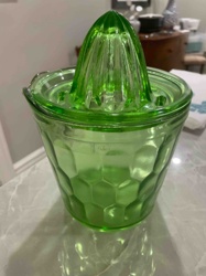 Vintage Green Uranium Glass Citrus Juicer Reamer with Measuring Pitcher