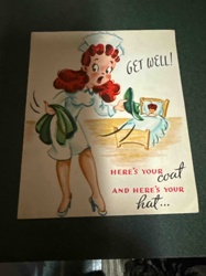 Vintage Humorous Get Well Greeting Card Featuring a Nurse Illustration