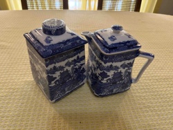 Ringtons Tea Blue Willow Pattern Tea Caddy and Matching Teapot Set