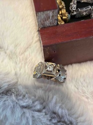 Two-Tone Gold and White Metal Wide Band Ring