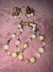Vintage Vendome Faux Pearl and Aurora Borealis Crystal Jewelry Set