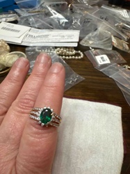 Oval Lab-Created Emerald and White Topaz Triple Shank Ring