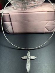 Modern White Metal and Rhinestone Cross Pendant