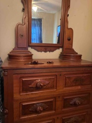Victorian Eastlake Style Walnut Dresser with Wishbone Mirror