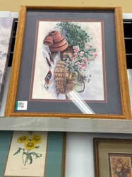 Framed Watercolor-Style Still Life Print of Gardening Scene