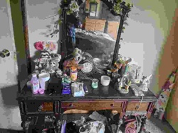 Vintage Carved Wood Dressing Table with Mirror