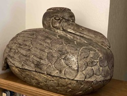 Wizard Carved Wooden Container with Inlaid Gemstones