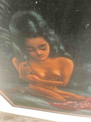 Mid-Century Polynesian-Style Velvet Painting of a Young Woman
