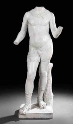 Glazed Terracotta Fragmentary Figure of a Youth in Classical Armor